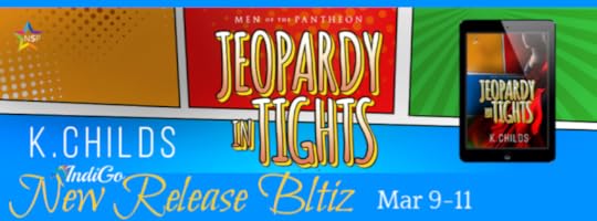 Title: Jeopardy in TightsSeries: Men of the Pantheon, Book OneAuthor: K. ChildsPublisher: NineStar PressRelease Date: March 9, 2020Heat Level: 3 - Some SexPairing: Male/MaleLength: 42600Genre: Science Fiction/Fantasy, LGBTQIA+, sci-fi, alternate universe, super heroes, super powers, bodyguard, businessman, interracial, second chancesAdd to Goodreads