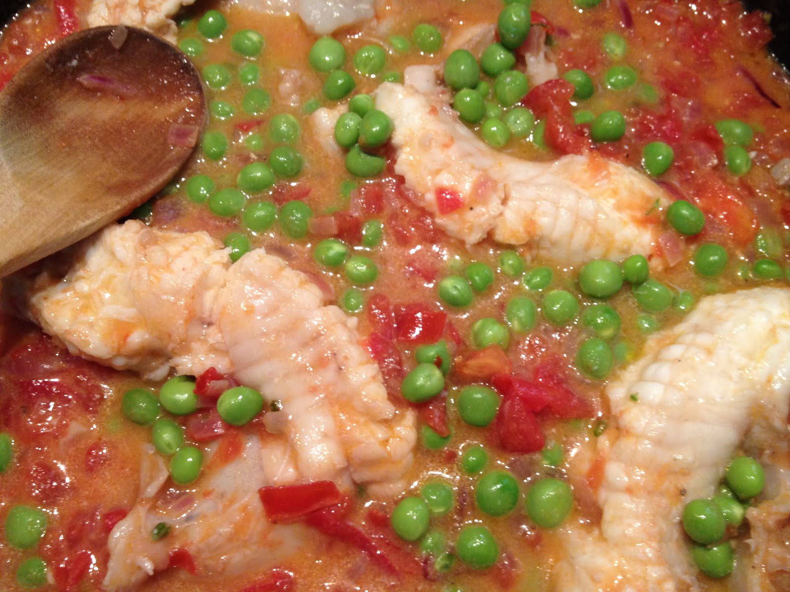 Monkfish Fillets with Tomatoes and Fresh Peas