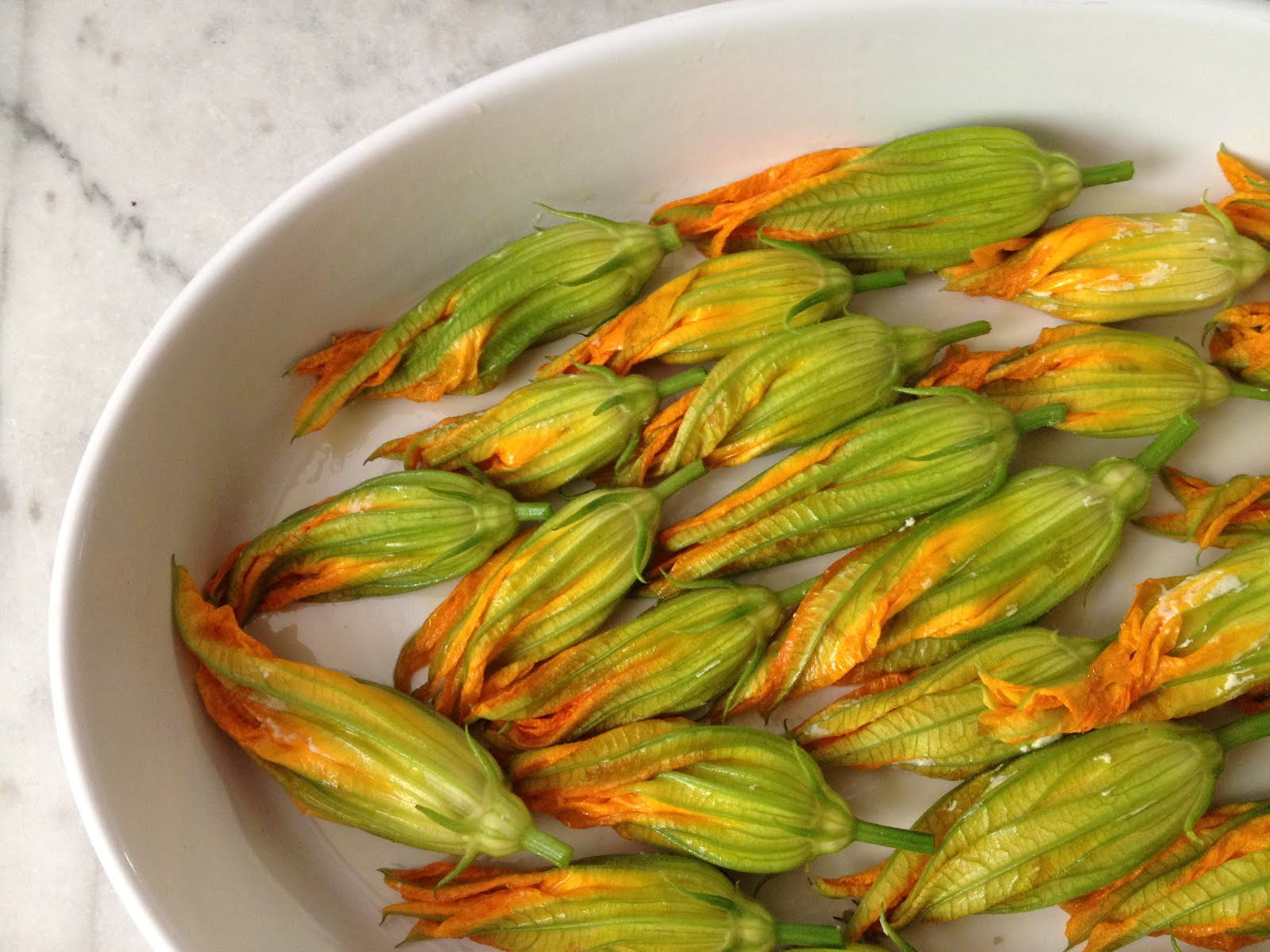 Zucchini Flowers Stuffed with Goat Cheese and Fresh Mint