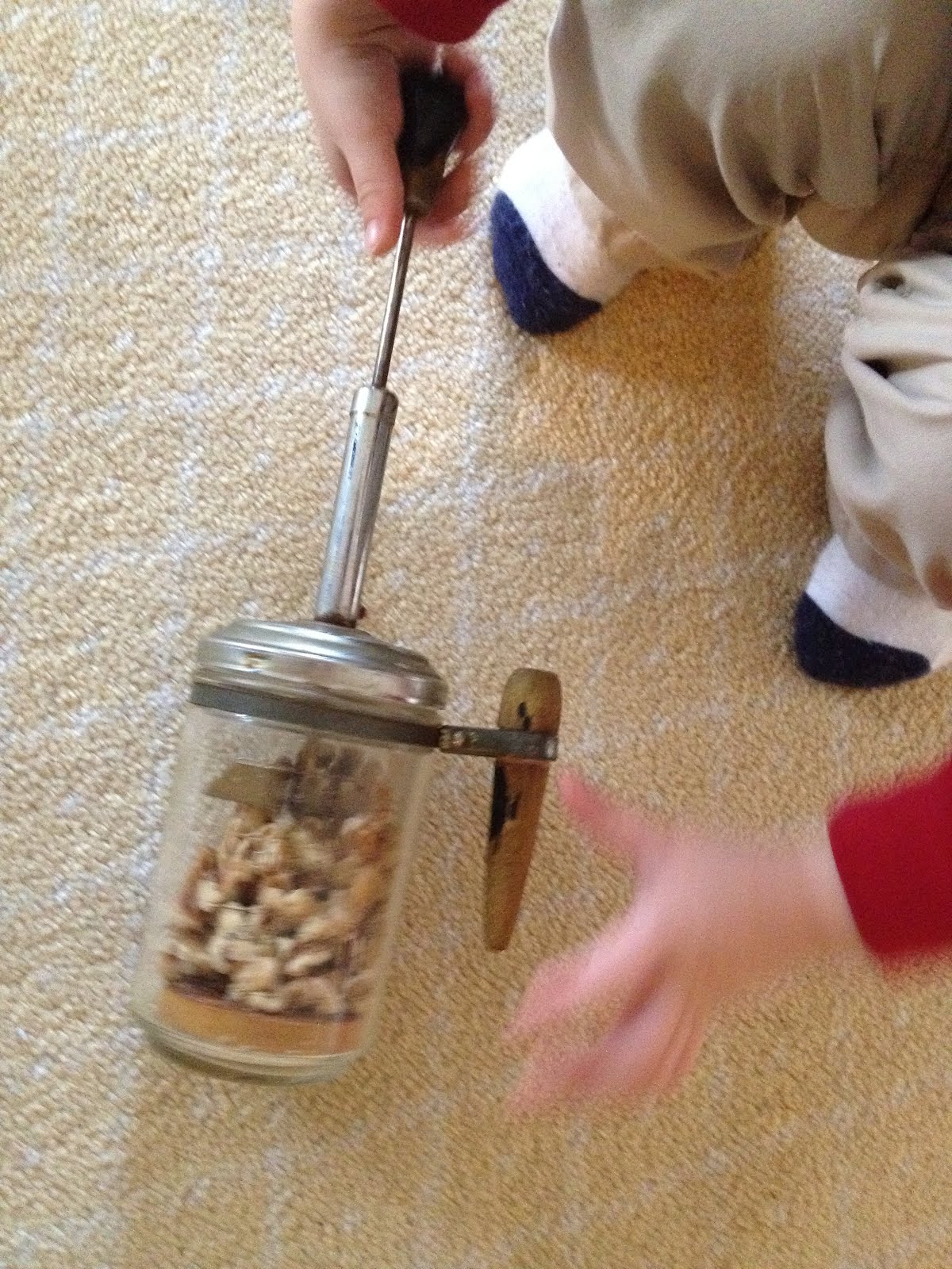 It's been 25 years since I saw my grandfather sitting at the kitchen table, with his engineer's concentration, pulverizing nuts with one good hand (the other damaged by a stroke). This year my son took a turn, pushing down the spring activated plunger onto the round wooden base. I love that about the holidays; the repetition of ingredients and recipes makes the years and the generations blur together - everyone makes an appearance, if only in my head.