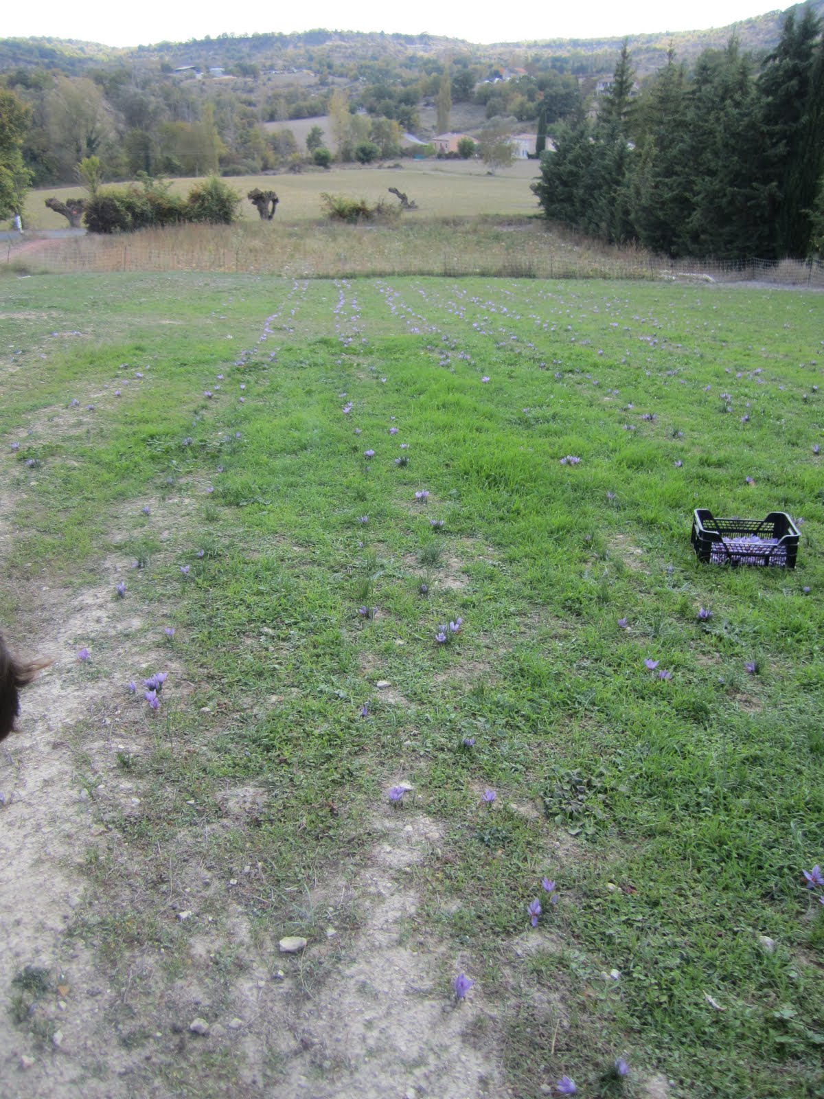 France has made me a bit shy about asking people for things, so it took me a year to work up to the courage to casually inquire if I could come and see the harvest. Saffron is one of the few ingredients in my French kitchen whose origins remain mysterious to me. I have no problem identifying the stuff in the jar, but no real idea what it looks like when it pops out of the ground. I gave Didier my cellphone number and hoped they would call. He did.