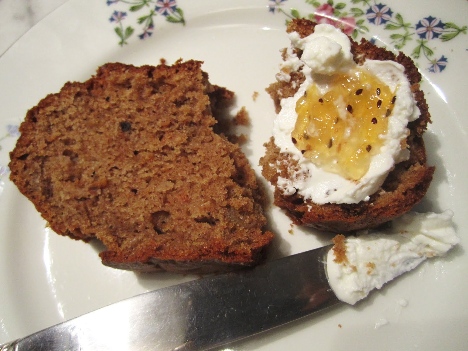 Sometimes a favorite new recipe is created by the collision of desire and constraint. Desire: Zucchini bread at 10pm on a Thursday night. Constraint(s): No zucchini, only a half cup canola oil, and a village with narry a store open past 7:30pm.