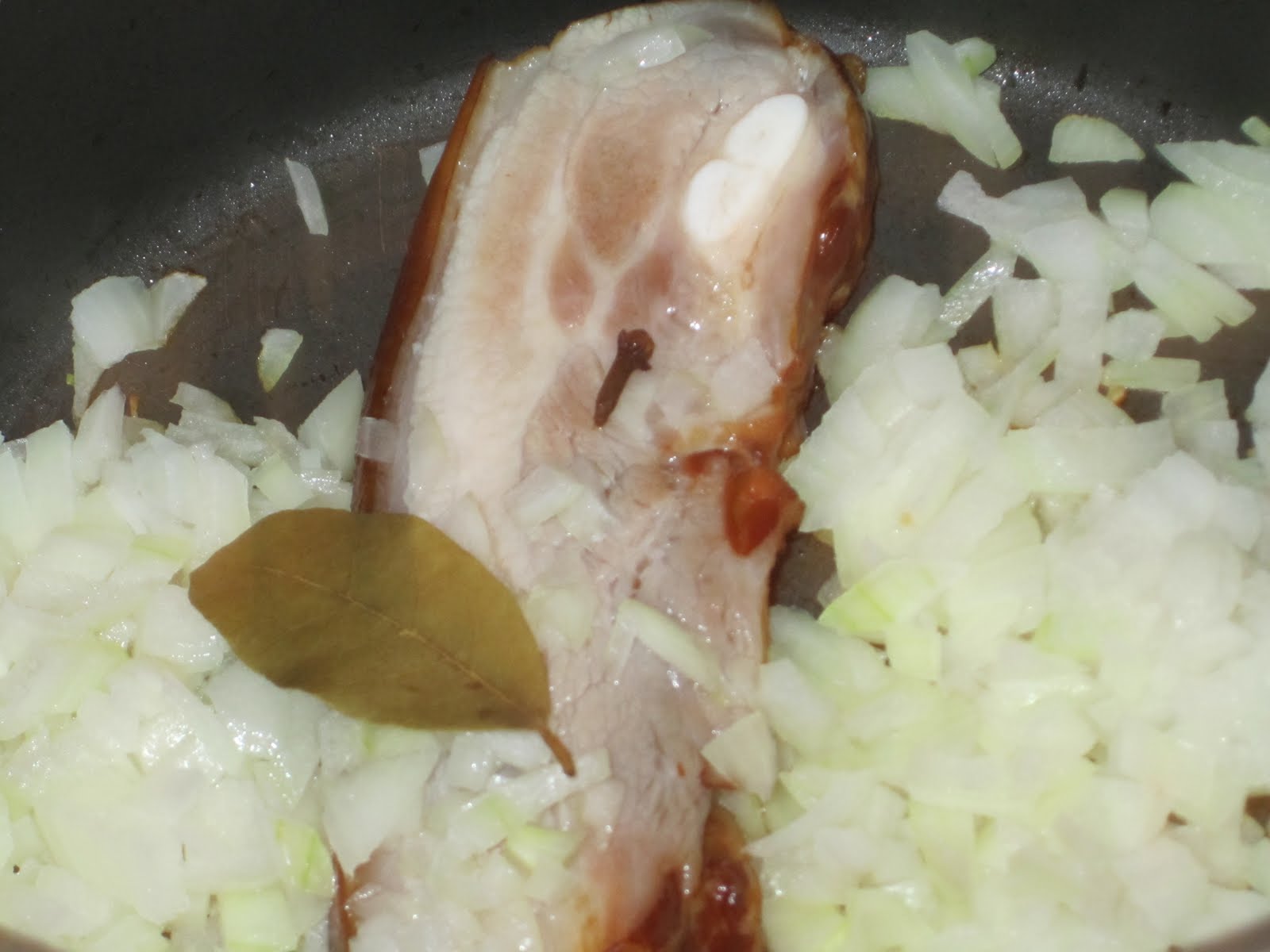 1 ham hock or 1inch thick slice of pork belly, slab bacon or pancetta