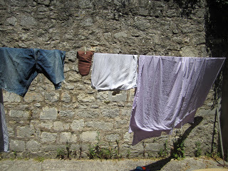 G., of course, thinks it's perfectly normal to hang our undies out under the stars. It smells good. It saves electricity. Yes. But. I'm American. God help me, I love a good tumble dryer.