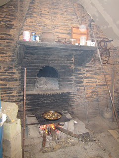 We entered the house through the small sitting room, it's open fireplace stained with smoke. It was a strange little house, two steps up and three steps down to every room. Walls thick and cool and white.