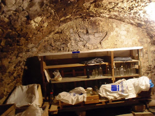 The next morning, we found ourselves in the 17th century cellar of La Maison Pons, which had been Mireille's family home for 5 generations. Gwendal and I ducked as we followed Mirelle down the impossibly narrow steps at the far end of the room. The vaults of sand colored stone above our heads gave the space a slight chill, which, apparently, extends even into the heat of the Provencal summer. Mireille cleared away some empty wine bottles and pointed to a low wooden shelf, about a foot from the earthen floor. "That's where Char buried his manuscript," she said. "He came back for it after the war."