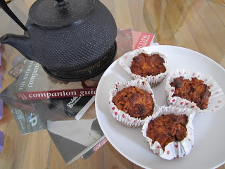 Karin is a big gluten free cook - and she brought over some lovely carrot muffins made with coconut flour courtesy of almond flour fairy Elena Amsterdam of Elena's Pantry. I'm normally suspicious of gluten free pastries (I'm a texture nut), but these were moist, not overly eggy - and the coconut flour added a tropical ray that was just right with the grated carrots and juicy raisins. Never mind the fact that it was gloomy and chilled in Paris in the middle of June - we had the perfect excuse (and nibbles) to sit and talk the afternoon away.