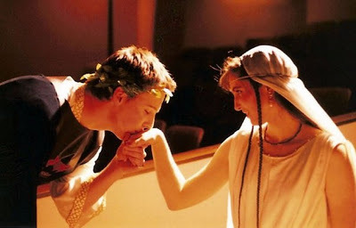 I have yet to be saddled with another castof hundreds, but I have had the transformer blow half an hour before show and the show still go on with audiencemembers holding flashlights (French Butler). I've had mycast plagued by walking pneumonia (King of Fools), performed despite African weddings dancing loudlyabove our heads (Taming of the Shrew AND As You Like It), and created rules for rowdy adolescents, such as: "Thefurniture is not for fun" (Tempest).