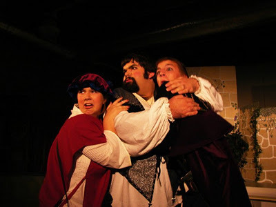 Grumio, Lucentio and Petruchio brave the crazy wedding partyin Gaudete Academy's 2010 production of The Taming of the Shrew
