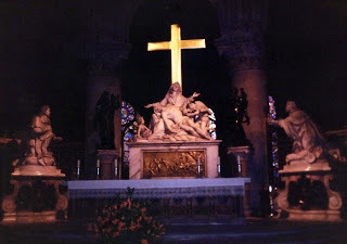 "This guy," I thought, "has done this before." However, since we were already at Notre Dame and I did want to see it, we went in. I admired the rose window, he attempted to whisper something about how "anciens" everything was (which is how I learnt the French for "ancient"), and then I took a page from my mother's book and threw myself down in front of a pieta and prayed.