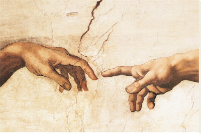 And suddenly, her eyes shifted to mine, and the raging harpy before me softened, began crooning, approaching me with her hand outstretched, as if she were reenacting Michaelangelo's Creation of Adam all on her onesies. I believe her exact text went something like: