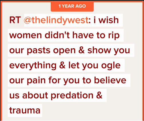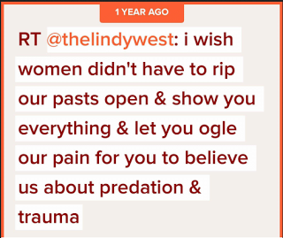 Heck! Remember the 90's? We all laid the blame for Bill Clinton's affair on "other woman" Monica Lewinsky. A narrative that is finally being reckoned with today. Most damning, Lewinsky is on the record in Vanity Fair saying: