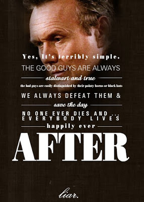 Compare this to the Whedonverse where everyone is notoriously on notice. In the movie Serenity, when Wash died, just as soon as our scrappy crew seemed to be in the clear, it hurt. It hurt because we, the audience, were on the verge of success - finally. And then just as Wash piloted us to safety like a leaf on the wind, he was impaled. And Joss being Joss: that's it. Should the crew of the Firefly ever get together again, it will be without that dinosaur loving pilot.