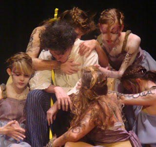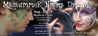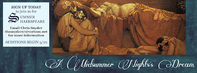 Similarly, although our Midsummer's is beginning to explore questions not only of love, but also of trust. There's all sorts of neat stuff happening in rehearsal. However, for the purposes of the poster, people really want to see a fairy and a donkey. Which is all right by me! Hence, without further ado, the Facebook cover (make-up courtesy of my assistant stage manager, and former Katherina Minola) - true poster to follow soon! Enjoy!