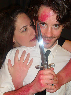 A Comedy of Murders: I'm the sophomore class play director, for HHS competitive plays, and I knew we'd have quite a few people for the year I directed. So I wrote a play with thirteen parts...and then had to add an extra part anyway! I also wrote a show that only needed one male actor...and then I was blessed with two! It was a fun show, full of in-jokes, and at the very end we let our murderer go running through the audience stabbing everyone (yay theatre of cruelty?). We also had an invited dress rehearsal, where we worked out what we would do should an audience member choose to go on-stage. I'd say that, although I've certainly worked since with audience interaction, A Comedy of Murders, is sort of the ending-place for the moment of really exploring what you can and can't get the audience to do. It's fascinating: the audience will play along, but refuses to destroy a show. Even when invited. You can watch the whole thing (single angle) below: