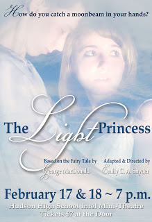 The Light Princess/Macbeth: I'm about to start two shows that I've just cast, my adaptation of The Light Princess by George MacDonald, and Shakespeare's Macbeth. I'm psyched about both for a few reasons. The Light Princess is very Theatre for Young Audiences (TYA), which means that we've got a cast of six (and three floaters - think Noh Drama), we're going to be using puppets, and backlighting, and throwing toilet-paper over the audience, and blowing bubbles, and all sorts of fun stuff to create a world wherein princess both fly and float. On the other supernatural end of things, I'm also doing Macbeth which is one of Shakespeare's Big Four (Hamlet, Midsummer's, Romeo & Juliet, Macbeth). It's also the only one of the big for I haven't directed yet. I've teched it twice (lights both times, actually), but this'll be the first time directing it. I'm psyched to delve into this play less as a war story and more as a story of the death of children and the betrayal of trust. It's an inimate tale of murder, revenge...and yes, hopefully, a glimmer of redemption. Even if that redemption's lost. We also have a super cast going in (still looking for a few good men, though!) and so I'm super excited to see what happens!