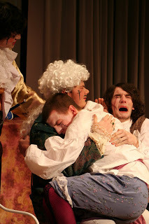 Tartuffe: A life-long desire to direct this play finally came to pass in 2010-2011 when we first produced the script in its entirety...and then a whirlwind, highly cut down version for the Massachusetts Drama Guild Festival. We were non-competitive last year, in part because we didn't quite know what we were getting into, and in part because we had been working on this play since October 2010...and were ending in March 2011...and that's a long time for high school students to have to see each other in a play. That said, each iteration of Moliere's greatest work became better and better. So that by the time we finally got to Festival, when the Tartuffe actors left the stage, the other actors from other schools at Festival got on their knees and bowed down to my actors. We were told by the judges we wouldn't have gone on anyway, because essentially we were too funny, but what a wonderful critique!