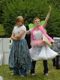 One of the projects that the super-duper league of third-grade readers were asked to do was to go down to the mentally challenged students (they weren't integrated into classrooms, then) and read to them books for about half an hour. This was all very well, but after a day or two of this, I suggested to my classmates that it would be far superior (and less drool-y...I'm afraid my first day I'd been placed with a perfectly lovely fellow human being who, while I dutifully read Clifford, fell asleep on my shoulder and cheerfully wetted it) if we acted out the stories.