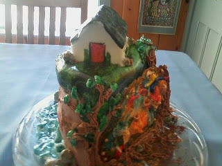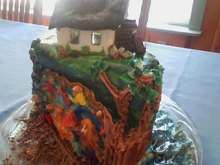 Well, you knew that, right? But they continually amaze me anew; I was flabbergasted today with this incredible treat. Thank you, Niamh! I am still speechless. Can you believe it? This cake shows the fae folk of Ireland welcoming me to a little cottage in Galway by the bay. And the pièce de résistance? Chocolate stout cake.