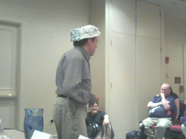 Later in the bar we suffered the entertainment; poor guy, we were not an appreciative audience because we were all there to talk—that's what writers do when they leave their solitude for a con. It was great to have a chance to catch up with Inanna and Morven whom I hadn't seen since last year's Readercon.