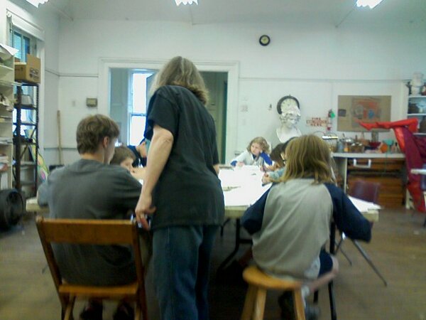 Then it was off to Elena's. She and Rod were busy meeting with Desmond Tutu (yes, really!) so I let myself in and greeted the happy puppies. We all went outside and sat on the back porch for a bit until they got home. In the morning I was a visitor at Elena's cartooning class. She does an amazing job with these young kids.