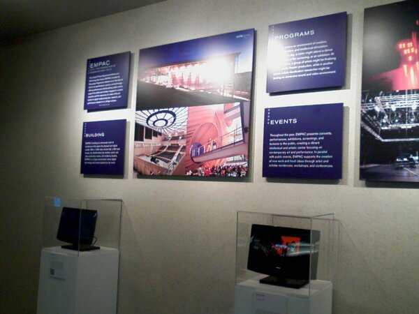 One of the lovely things that has made travel much nicer lately is the advent of curated art in airports. In the Albany airport, there are exhibits from many of the museums in the region, including my fave EMPAC, to give you an idea what's at each museum.