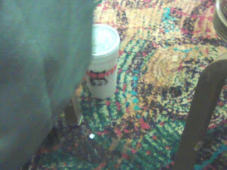 It was my last year as chair of the Medieval Popular Culture area: we're combining with the Arthurian area (strength in numbers), so next year I have no responsibilities but writing my own paper. Naturally I've already come up with an idea for a special panel: anyone interested in a Romance & Comics, let me know. I attended the open forum on Romance scholarship which was quite interesting: not surprisingly, there were only two men there. You gotta admire the chutzpah of a guy who'd bring this cup to that room full of women (or maybe it was just obliviousness):