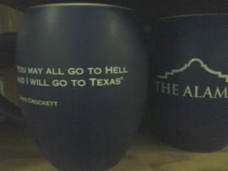 Here's a little taste of the trip to the Popular Culture Association Conference: we stayed at the Marriott Rivercenter which is a combination mall and canal, chock full of tourists and cheap Texas trash, er, souvenirs. I lived in that state for three years, eleven months, six days, five hours and fifteen minutes and I never understood the arrogant Texas chauvinism. I lost count of the number of Tejas tattoos I saw. I don't think I've ever seen anyone with Connecticut tattooed on their skin.