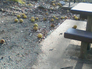 Then we went off to the Clear Creek Recreation Center to do a little strolling and bird watching. Anyone know what those grapefruit-sized things are? Some kind of nut?