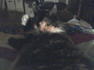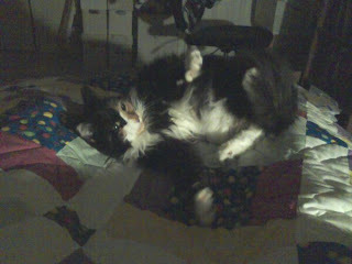 I will be traveling today, so here are some cute pictures of Pumpkin rolling around on my bed. It's been very lovely visiting Miss Wendy, Pumpkin and Boo.