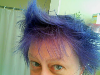 It's actually purple not blue (note how washed out my eye color is), but nice and bright :-) Might wear my purple tiara, too.
