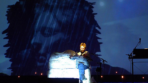 Laurie Anderson is always an interesting performer. I had seen her talk about developing this piece at MassMOCA months ago, so I was already curious to see what had come. It was a much more visual show than some of the others I'd seen in recent years, with images and words projected on the giant screen behind her, on a sofa as well as two uniquely shaped screens on either side of the stage. The show, "a meditation on life and language", ranged widely across a wide variety of subjects in a dialogue between her own voice and the "male voice" she's been using for years that now has the name of Fenway Bergamot. Many of the themes had great resonance for me particularly her thoughts on the impact of silence and her descriptions of her travels in Iceland and how they sparked revelations about her own family. She rode Icelandic ponies at Halldór Laxness' farm (I only rode them at the farm across the way) and met a man who had a brilliant idea to turn a decrepit barn into dance club. Looking around the bleak landscape, Anderson realised at last who this man reminded her of: her own father and his enthusiasm for completely impractical notions.
