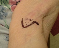 Then she drew a little happy face on the upper mark to keep Mom company.