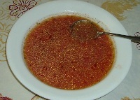 Heat the oil in a saucepan. If you don’t have garlic-flavored oil, moosh up a clove of garlic and put it in the oil. Add onions, green pepper, and dill. Cook, stirring, until onions are translucent. Meanwhile, put cucumbers and tomatoes into blender and process until pretty liquidy. Add to oil and onions. Add rest of ingredients. Bring to boil. Reduce heat and simmer about 20 minutes.