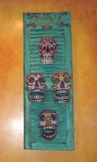 So we went there for lunch, and the food was standard items but MOST tasty, and the beer was good, too. But check out what was staring at me over Jane’s shoulder. Jolly, eh? The writing at the top, in case you can’t read it, says, “El Dia de los Muertos” — The Day of the Dead. Just what any customer wants to see in a restaurant, am I right? Still, the dead guys do look very festive, and it is written in Isaiah 22:13, “let us eat and drink, for tomorrow we die.” Makes you want to order dessert. Or at least another beer.