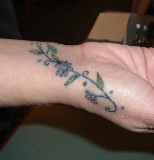 Isn’t that pretty? And the flowers each represent one of her children, with the colors of the flowers being the colors of the kids’ birthstones. Every time she looks at that tattoo, she’ll think of her precious children, although I suspect they’re always in her mind and in her heart.