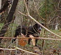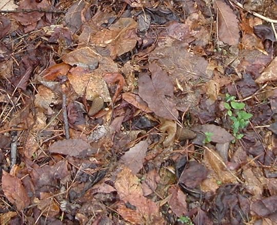 I've gotten used to our dog coming with me. Charlie wants him to, on the grounds that the big gallumpher will warn any lurking serpents away from my path. That might happen. If they don't run away from his lumbering, they'll run from my screaming, "Don't step on any mushrooms! Don't sit on any, either! Especially don't sit on any!"