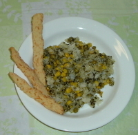 The other stuff in the picture is Jasmine rice, corn, lima beans, and pesto. It was very good, too.
