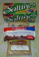 Bring to boil and cook 3 minutes, stirring constantly. Pour over crackers and spread with a spoon. Bake at 450 degrees for about 5 minutes. Watch closely to make sure it does not burn. Remove from oven and sprinkle on one 12 ounce package of chocolate chips. Let stand to melt. Spread and refrigerate. Break apart and serve.