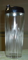 One of their wedding gifts, given to them by one of the husband's sisters, was a glass cocktail shaker with a silver top and four tiny cut-glass cups.