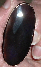 Oh, and I bought this next piece for myself, too, at Colokial in Corydon (they have a New Albany location, too). This ring is HUGE, but it's light. It's made from a faceted slab of moss agate. The setting is adjustable. If you look at it from a distance, it looks brown. If you look at it close-up, it's cloudy and has purple veins all through it. Kind of makes me hope they legalize marijuana in my lifetime, because I could spend hours with this piece.
