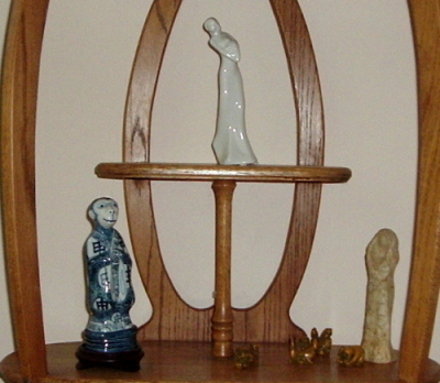In my Monkey King display, the Goddess Kwan-Yin in the form of a mother and child is keeping an eye on him, and Tara, the essence of Kwan-Yin's compassion, stands over him. To learn more about Kwan-Yin, here is possibly more than you want to know, but at least look at the pictures. I'm particularly taken with the last one, of Kwan-Yin with a mustache. I identify with that one, somehow….