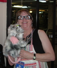 That was the signal. Sara Spradlin stepped into the aisle, Smokey, her cat with attitude, by her side.