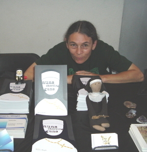 Speaking of brains, if you see some dribbling out of my ears, it's because it SO FREAKING HOT! The "literary" (as opposed to the one where they have tattooing [real, not fake] and Jason masks and stuff) is in the "fitness" area (talk about a fish out of water!) and the room is MADE to be hot. And it works. I keep telling myself that people pay good money to sit in a sauna.