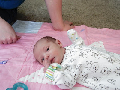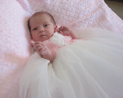 Her Great-Grandma Judi made her dress -- a beautiful heirloom treasure. (Emma slept through the entire service and pictures right until the very end here ...)