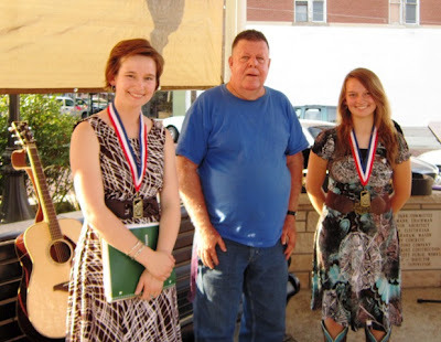 Here with one of their "fans" who gave them each a music ribbon for making it in the Fort Scott Tribune twice.