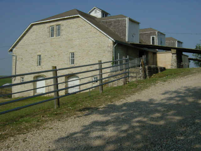 Note the three story barn, made from native limestone.