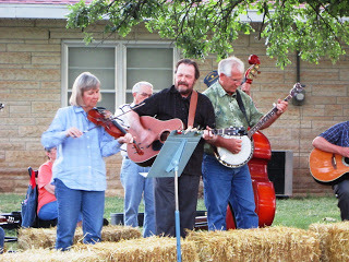 Here are the girls singing in Cottonwood Falls Saturday night on hay bales under the trees on the courthouse lawn. All in all, it was a great weekend.