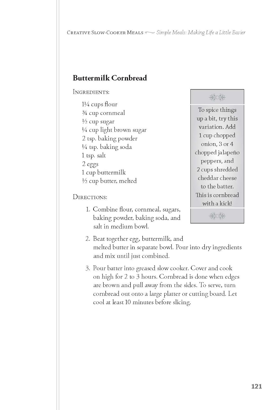 Harvest-time Halibut ChowderSalmon and Gingered CarrotsMediterranean Rice PilafIndian Chicken CurryApricot-Pistachio BreadShrimp CreoleRhubarb Crisp... and many more! Perfect for the frazzled mom who never has enough time in the day, Creative Slow-Cooker Meals gives readers more time around the table with delicious, healthy, frugal, and easy meals!