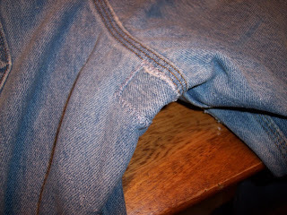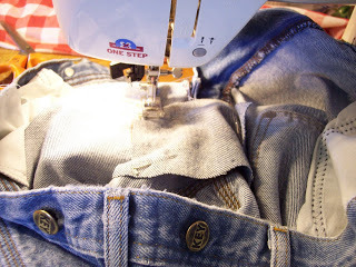 Twice a year, I'm called on by my dear hubby to use my years of prowess as a seamstress and patch his work jeans!